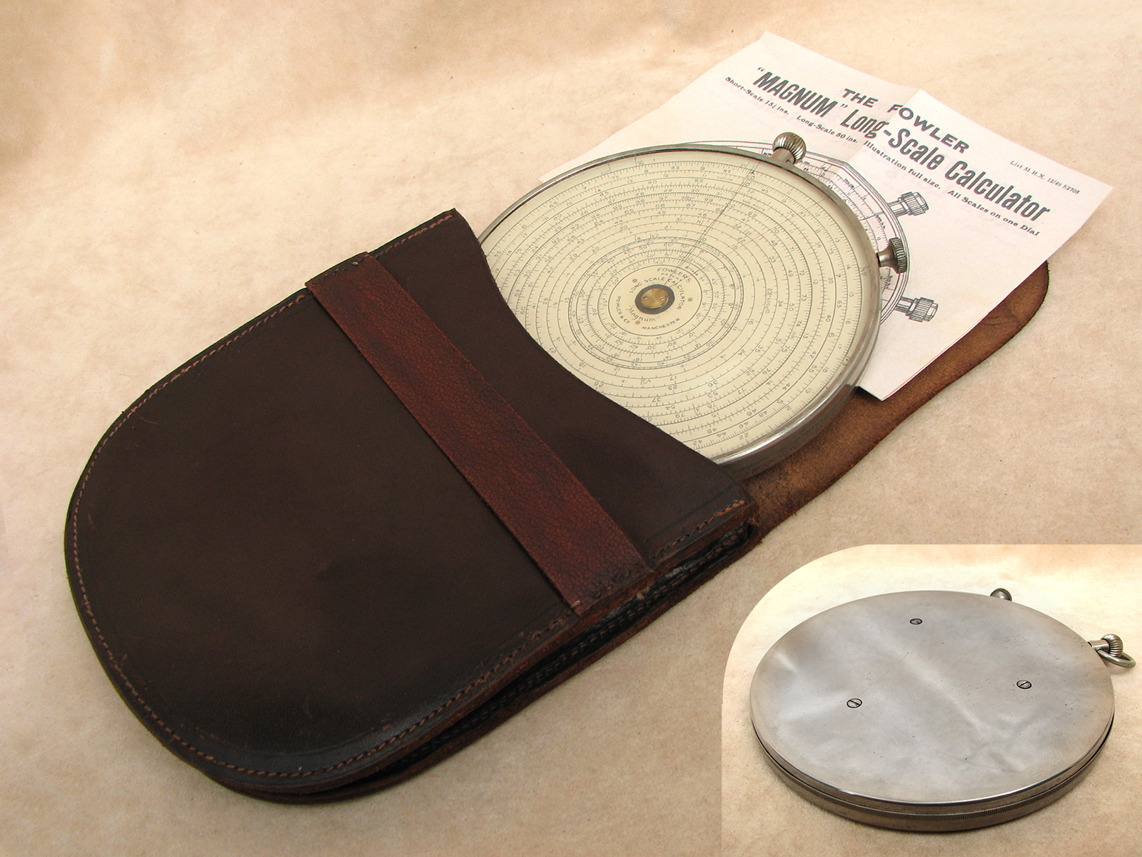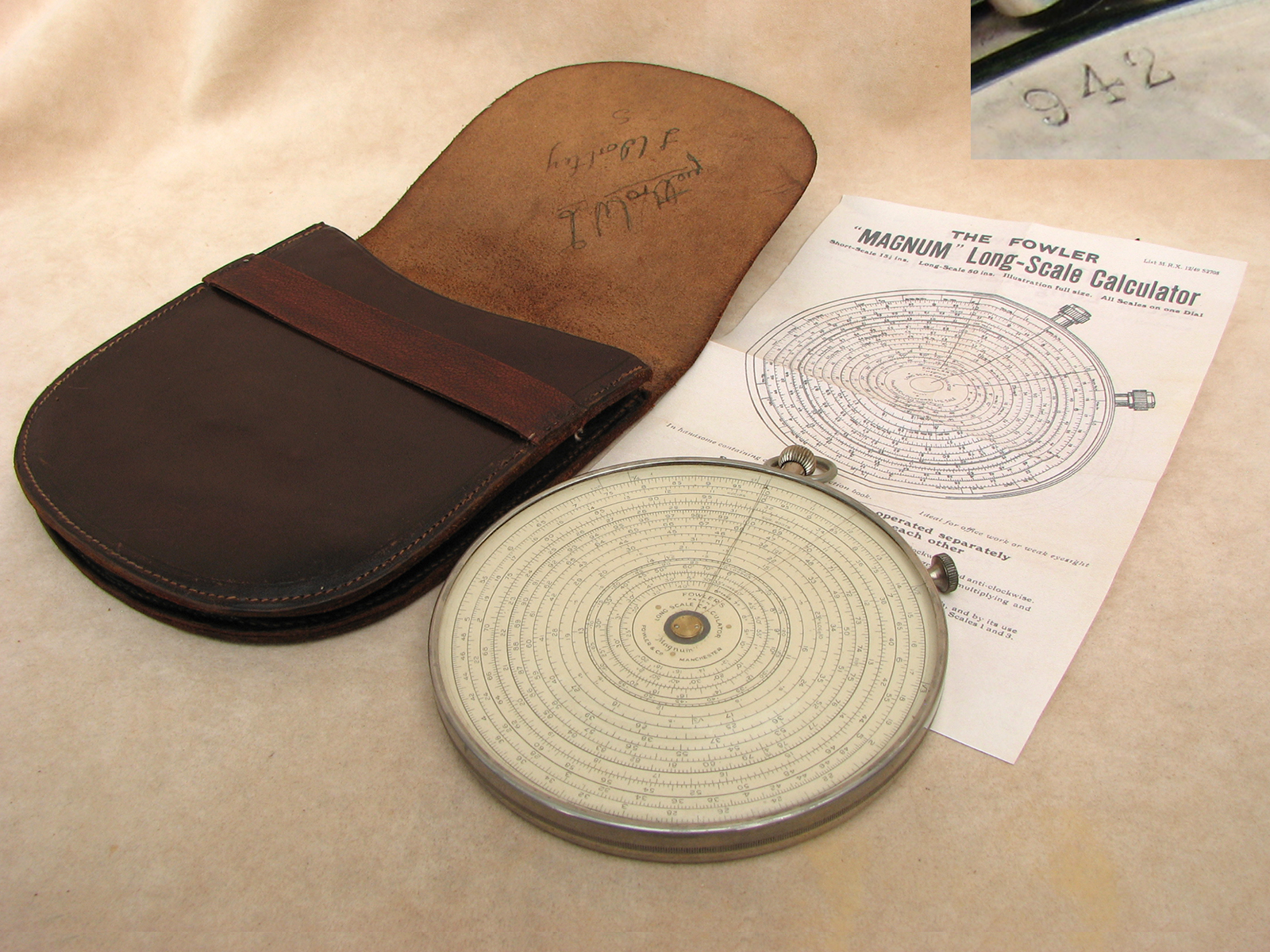 1930's Fowlers Magnum Long Scale calculator in leather case